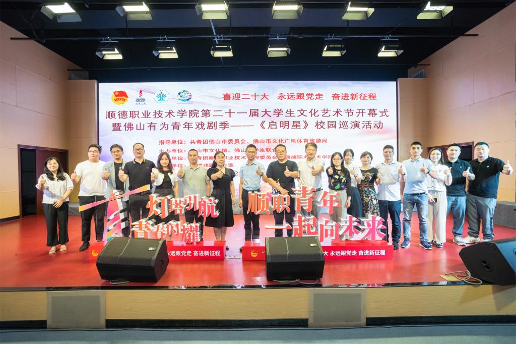 5月27日晚上,顺德职业技术学院第二十一届大学生文化艺术节开幕式暨佛山有为青年戏剧季——《启明星》校园巡演活动在李佘少鸿楼六号学术报告厅举行。佛山市文化馆、佛山市学生联合会相关负责人,《启明星》导演,校团委负责人,各二级学院党总支副书记,全体团学老师及100多名学生观众参加,近2000名观众,通过“顺职青年之声”视频号收看直播。