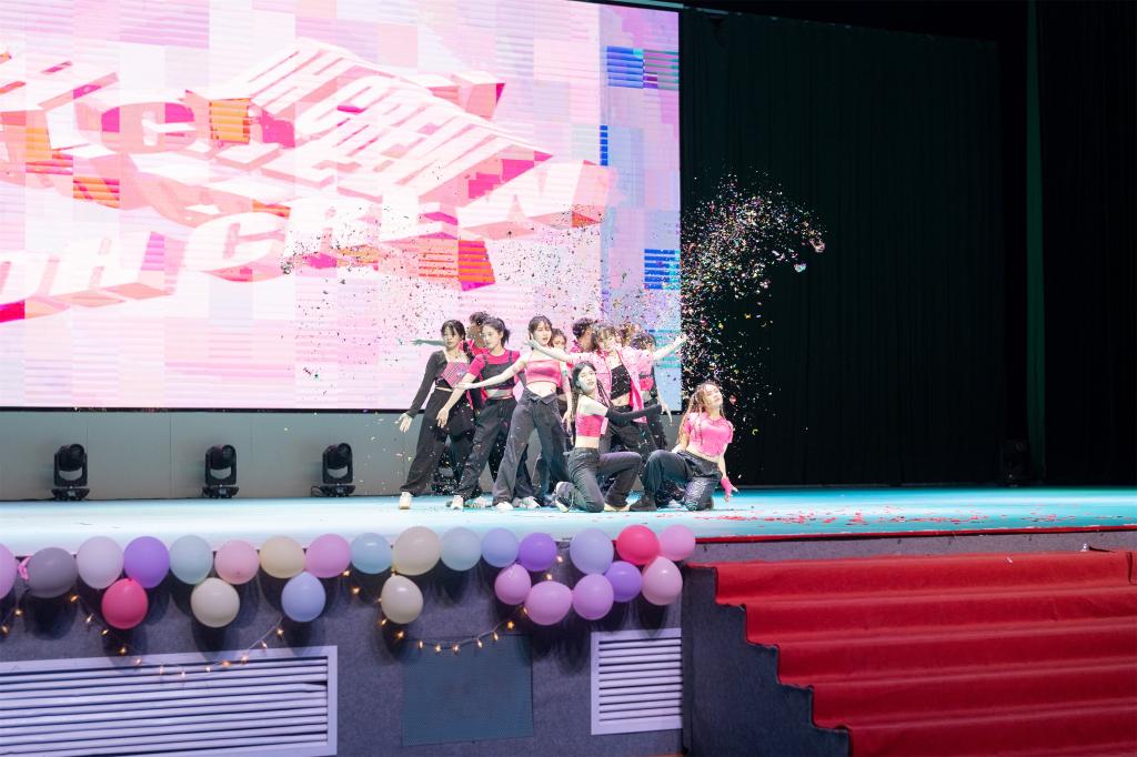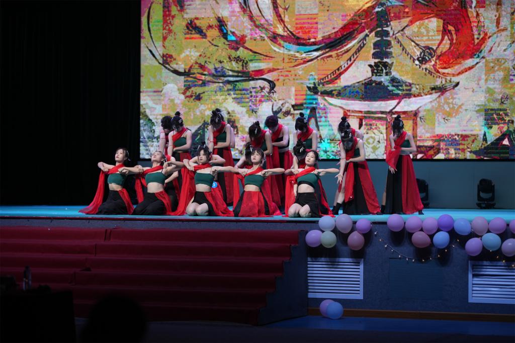 舞林大会总决赛分为两个篇章,第一篇章是“古今中外,海纳百川”共有4个舞蹈作品,分别演绎古典舞、爵士舞与拉丁舞,其中由平田等 19 位同学等带来的爵士舞《飞天一梦》,把敦煌文化与爵士舞融合,生动展示了博大精深、源远流长的中华文化。