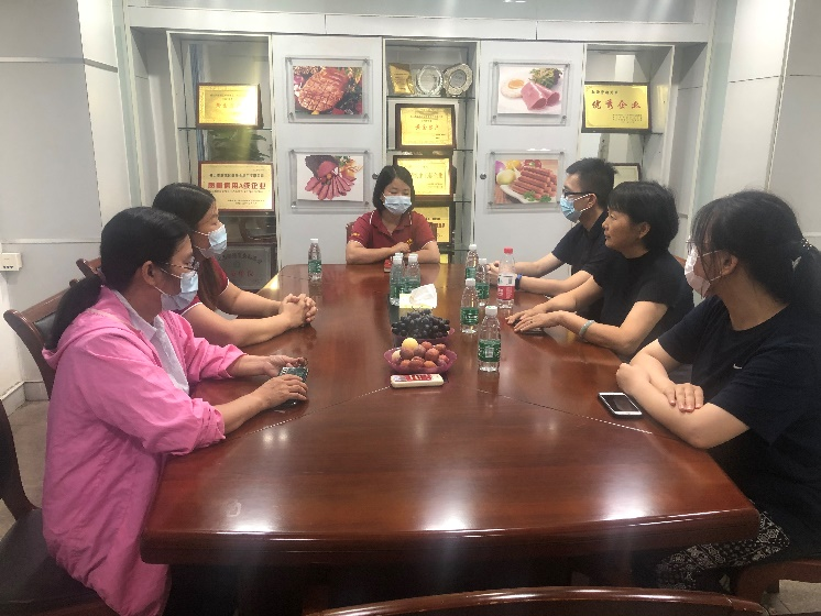 在顺泰食品厂有限公司,巡教指导组与企业负责人围绕人才培养方案、校企合作、产业学院等问题开展研讨。企业品质部经理和人事部经理与老师们进行了交流,研发部经理围绕公司旗下预制菜新业务与老师们研讨技术服务项目及今后校企合作计划。