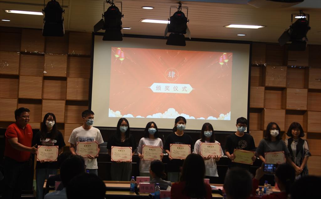 与电子商务专业开展产教融合校企合作的万和、德酷美、和哥登三家企业分别对本学期开展的大促实训项目进行了总结分享,对53名优秀学生进行了表彰。领导嘉宾一起为获奖学生颁奖。