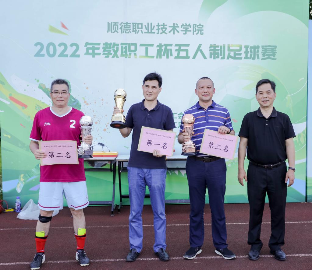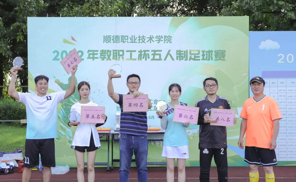 6月27日下午,学校2022年教职工五人制足球赛在足球场圆满收官。学校党委副书记刘毓、学校工会及各二级分工会负责人等参加颁奖仪式。