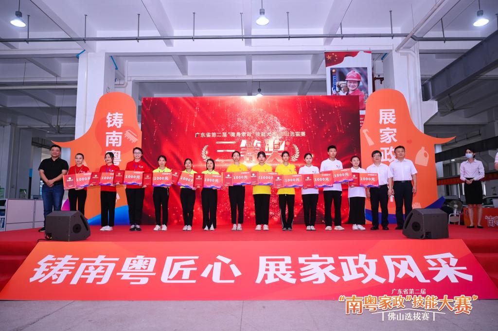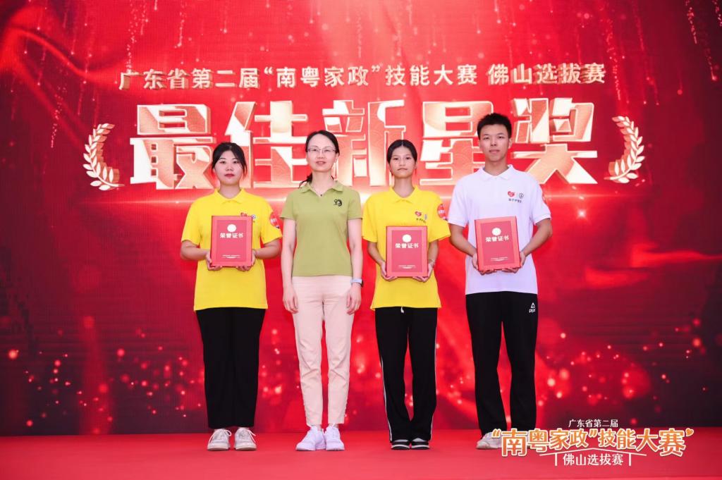 2022年广东省“南粤家政”技能大赛佛山选拔赛由佛山市三项工程领导小组主办,佛山市人力资源和社会保障局承办,选手来自佛山五区。在前期的区级选拔中,王坤、林伟芳等同学组成的代表队包揽了2022年顺德区“南粤家政”选拔赛的前四名。市级选拔赛分健康照护师(医疗护理员)、养老护理员、育婴员等赛项开展单人竞赛。在指导教师团队的精心指导和培训下,同学们在比赛中沉着冷静、快速反应,终获佳绩。