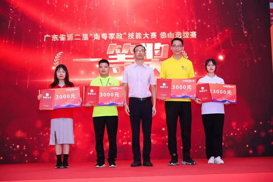其中,养老专业王坤同学获得健康照护师(医疗护理员)赛项第一名,获一等奖和“佛山市技术能手”称号及3000元奖金;养老专业林伟芳同学获得养老护理员赛项第二名,获二等奖及2000元奖金;康复专业冯淑敏同学获得育婴员赛项第三名,获二等奖及2000元奖金;养老专业梁文程、贺凡、郭棋鎔同学获三等奖、“最佳新星奖”及1000元奖金;王坤、林伟芳、冯淑敏分别获得健康照护师(医疗护理员)、养老护理员、育婴员赛项省赛资格;taptap获优秀推荐单位奖,是本次比赛所有参赛队伍中成绩最好的团队。