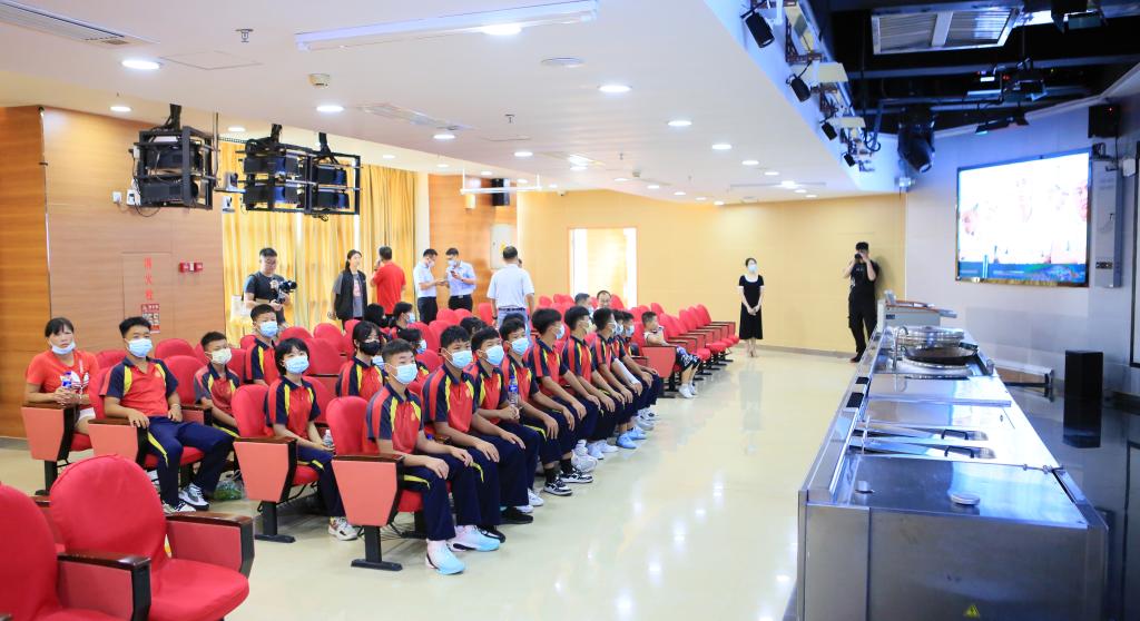 在顺德厨师学院实训中心,同学们认真听取讲解,详细了解近年来taptap成立顺德厨师学院,高质量落实“粤菜师傅”工程,开展“粤菜师傅”培训,助力精准扶贫、乡村振兴、东西协作的有关情况。大家还一起观看了根据真实故事改编的微电影《木嘎是块料》,片中来自四川凉山的年轻人木嘎在顺德厨师学院免费学厨艺、成长的故事引发同学们强烈共鸣。