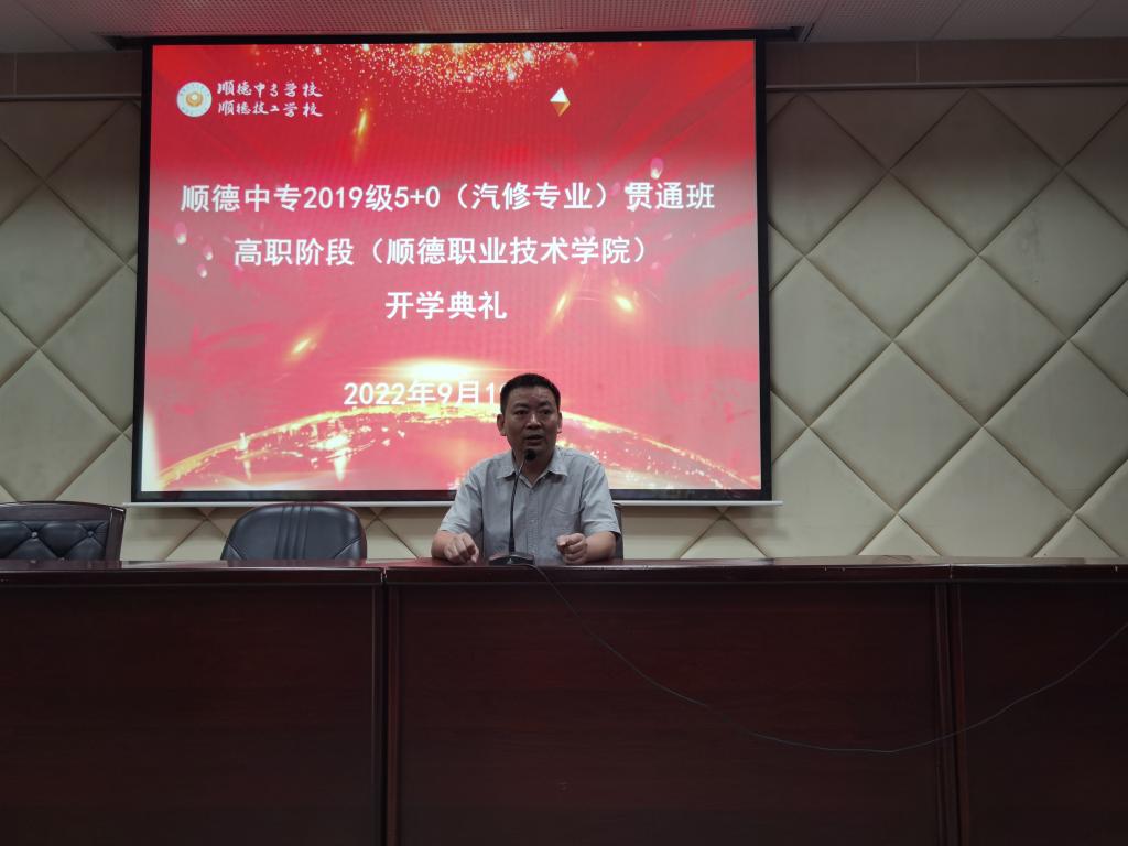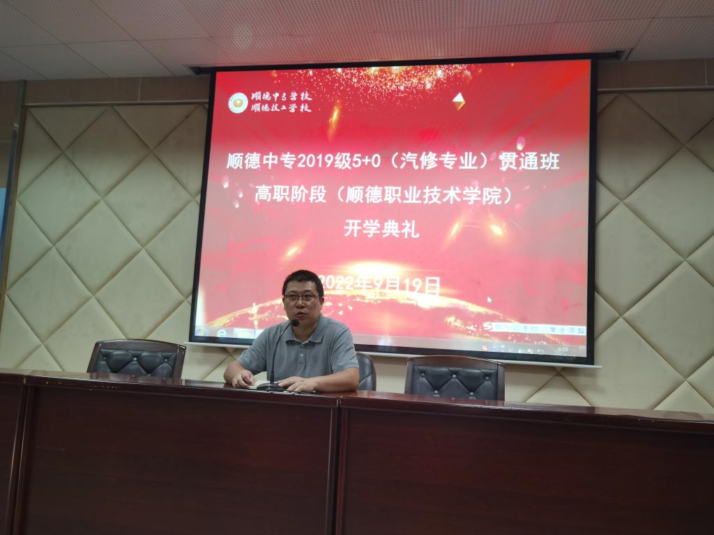 9月19日上午,能源与汽车工程学院与顺德中专联合培养2022级汽车专业贯通班开学典礼在顺德工业中专报告厅举行。能源与汽车工程学院院长肖文平、党总支副书记廖翠玲、汽车专业负责人和辅导员,顺德中专学校副校长马涛、邓晴,班主任及教师代表,2022级汽车专业贯通班44名学生参加活动。