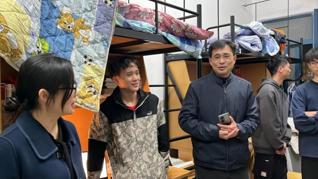 2月26日,学校党委副书记刘毓走访学生宿舍,与商学院学子亲切交谈,详细询问学生日常学习生活情况,勉励他们努力向上。