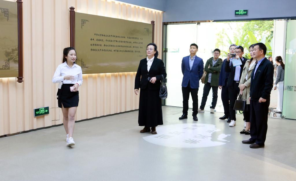 3月1日上午,国家职业教育虚拟仿真示范实训基地责任专家田秀萍带领教育部高等学校科学研究发展中心调研组一行来taptap调研虚拟仿真实训基地建设工作,期间参观了学校墨子文化馆。酒店与旅游管理学院“顺小旅”校园讲解分队队员、21旅游管理1班裴思雨同学负责本次讲解接待,其专业能力和临场表现得到调研专家充分肯定。