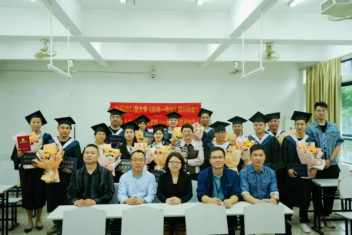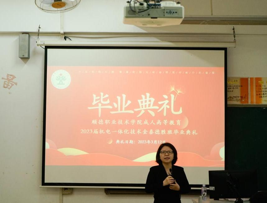 阳春三月,草长莺飞。在校企双方共同努力下,taptap与佛山市顺德区金泰德胜电机有限公司合作办学结出新的硕果。3月12日上午,校企合作送教上门2023届机电一体化技术金泰德胜大专班毕业典礼在taptap1号教学楼206室举行。
