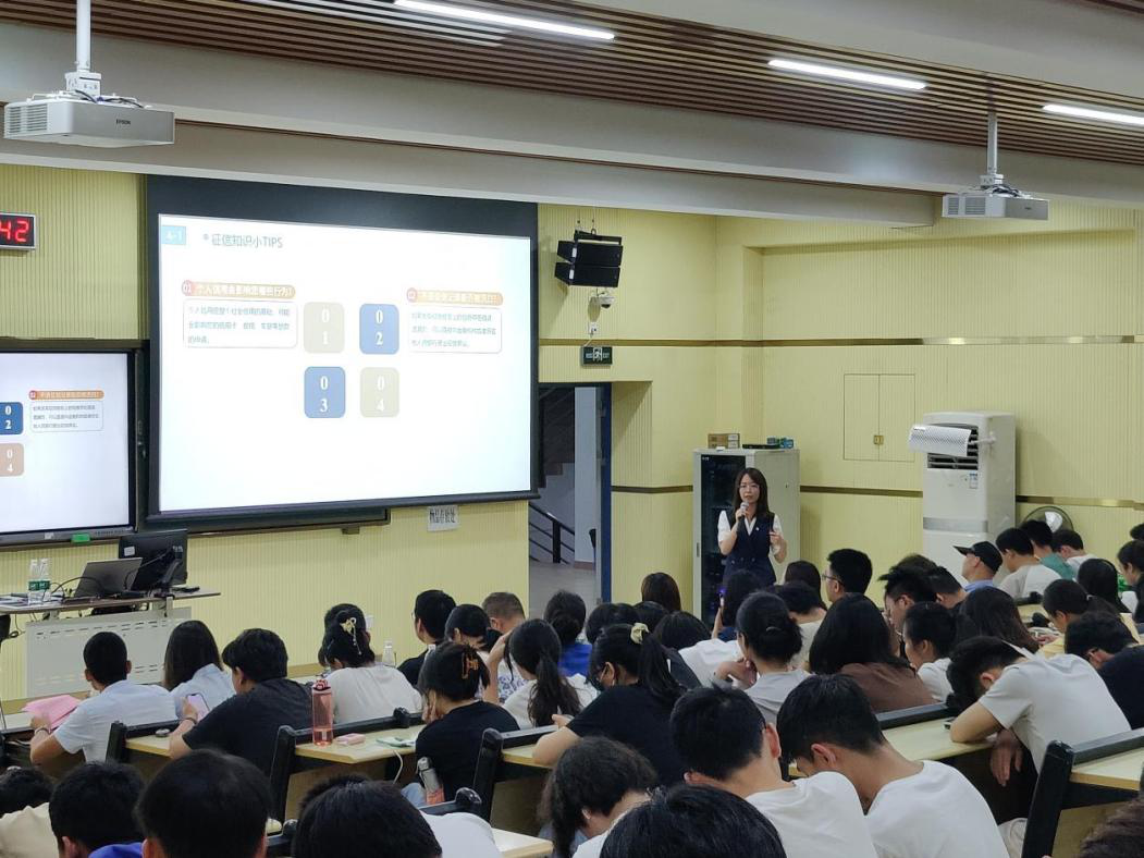 黄兴明围绕如何防范电信网络诈骗及“断卡”专项行动注意要点进行讲解,针对常见电信诈骗类型进行科普,告诫同学们未知链接不点击,陌生来电不轻信,个人信息不透露,转账汇款多核实。