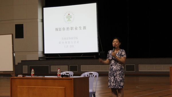 彭红部长通过与现场学生讨论漫画《看这个人的一生》引出“为什么要进行职业规划”,阐述了职业规划的基本概念、基本要素和模式;并通过与现场学生互动讲述了择业的具体内容、择业误区、择业前需注意的问题。最后,彭红部长给设计学院学生赠送了三十张学习卡作为鼓励。