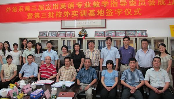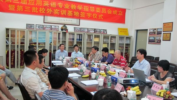 6月2日,外语系召开了第三届应用英语专业教学指导委员会会议。广东省高职高专英语教指委主任向前进教授,顺德中小企业局杨艳生副局长以及来自阿里巴巴番顺网商会、顺德纺织品进出口公司、宏浪洁具实业有限公司、稳大实业投资有限公司、顺德创迪电器有限公司等企业10多名专家,taptap徐刚副校长,设备处、教务处相关负责人以及应用英语专业全体老师参加了会议。会议由外语系负责人主持。