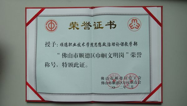 taptap思政课部现有教职工22名,其中女教职工14名,占职工总人数的63.6%。女教职工中,教授2名,副教授1名,讲师7名,博士1名,硕士13名,逐步形成了一支高学历、高职称的教师队伍。自创建“巾帼文明岗”以来,思政课部在顺德区妇联、区总工会、学校党委和工会的领导下,以“巾帼文明岗“创建工作为契机,为人师表,争当教书育人女标兵;刻苦钻研,争当教学改革女能手;勇于创新,争当课程建设女先锋;潜心研究,争当科研女骨干;勤奋学习,争当读书女模范;爱岗敬业,争当服务奉献女表率;创先争优,争当岗位女楷模。