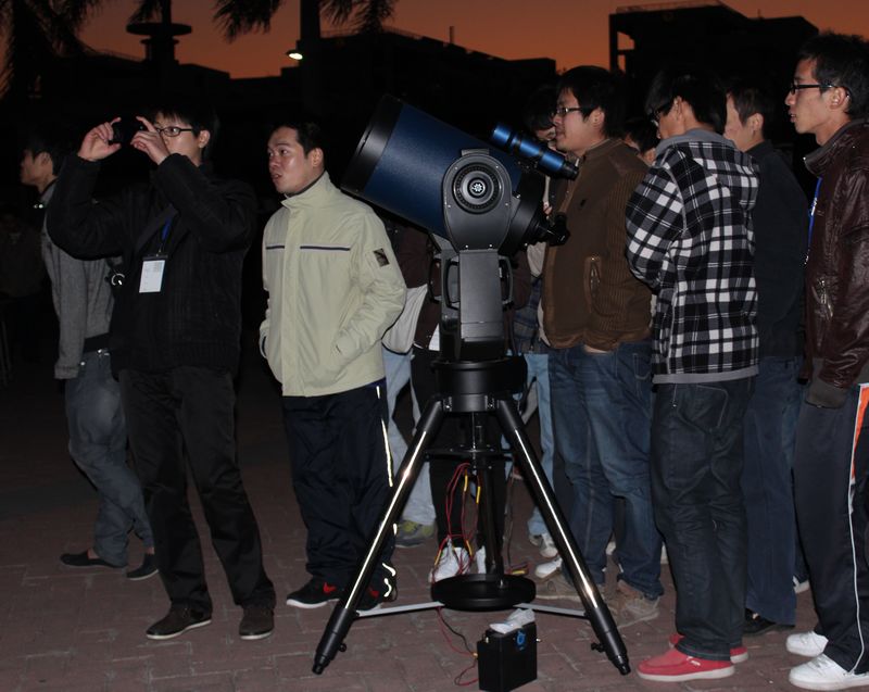 活动由学生处、校团委主办,校学生会承办,佛山市顺德区博通光电有限公司为此次活动提供了10台高清米德牌天文望远镜。活动现场人山人海,师生们井然有序排队观看,一览“红月亮”的真面目,现场还开设了高清宽屏现场直播,让不少师生对月全食惊叹不已。