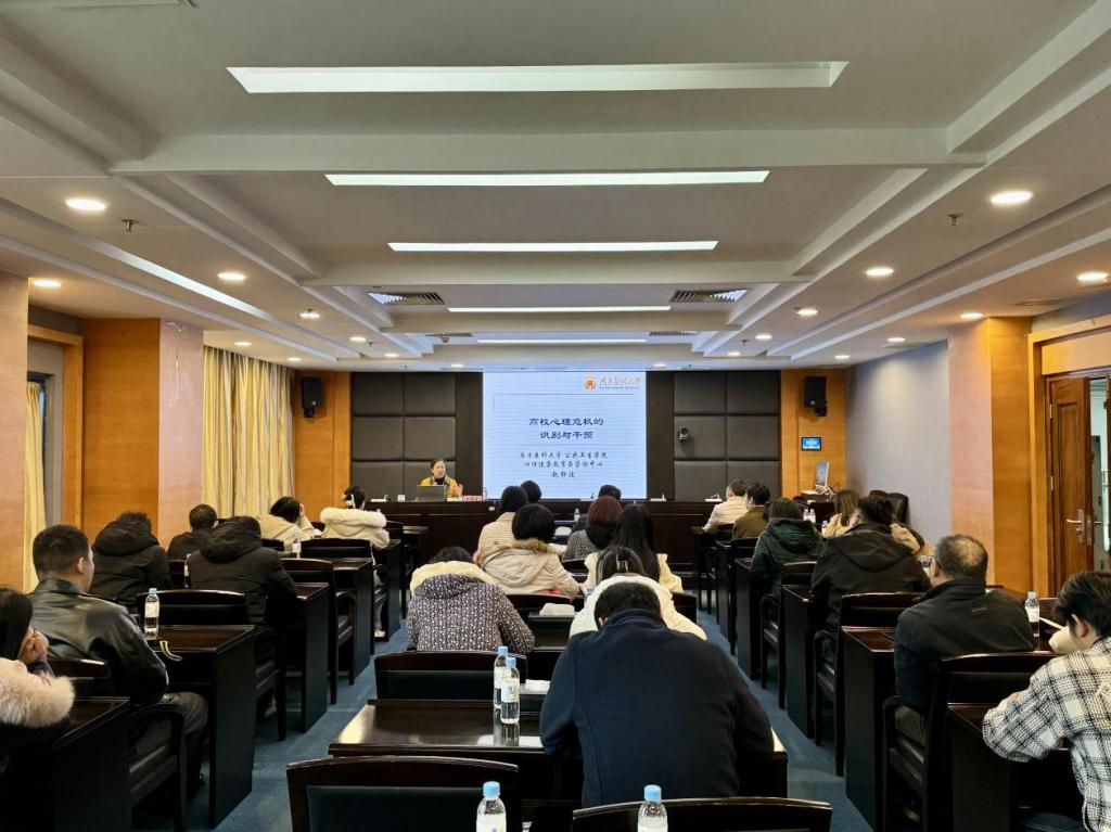 12月19日,学生工作部邀请教育部普通高等学校学生心理健康教育专家指导委员会委员赵静波教授来校作《高校心理危机的识别与干预》专题培训讲座。各二级学院党总支负责人,学校专兼职心理教师、辅导员、班主任以及学生工作部有关人员参加讲座。讲座由学生工作部副部长揭育通主持。