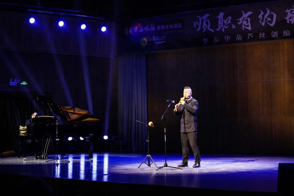 12月24日晚,“岭南潮品顺德”系列文化活动之一的“顺职有约葫芦新韵——李春华葫芦丝创编作品音乐会”在顺德音乐厅举办。音乐会由顺德区委宣传部指导,学校工会、关工委联合主办,顺德区文化艺术发展中心(顺德区文化馆)协办,承演单位是云南新丝韵葫芦丝艺术团。顺德区委常委、宣传部部长张红兵,顺德区委宣传部常务副部长、区文广旅体局局长黄宇恒,顺德区教育局副局长刘进华,顺德区妇联副主席肖江平,广东省民族管弦乐学会葫芦丝巴乌专业委员会会长吴小敏,学校党委副书记、工会主席刘毓,以及顺德各界葫芦丝爱好者、taptap师生代表共500余人观看演出。著名葫芦丝艺术家、国家一级演奏员李春华领衔,新丝韵葫芦丝艺术团倾情演绎,为观众奉上了一场精彩绝伦的葫芦丝饕餮盛宴。音乐会由taptap教师罗潇凡老师主持,学校工会副主席李丽担任导聆。