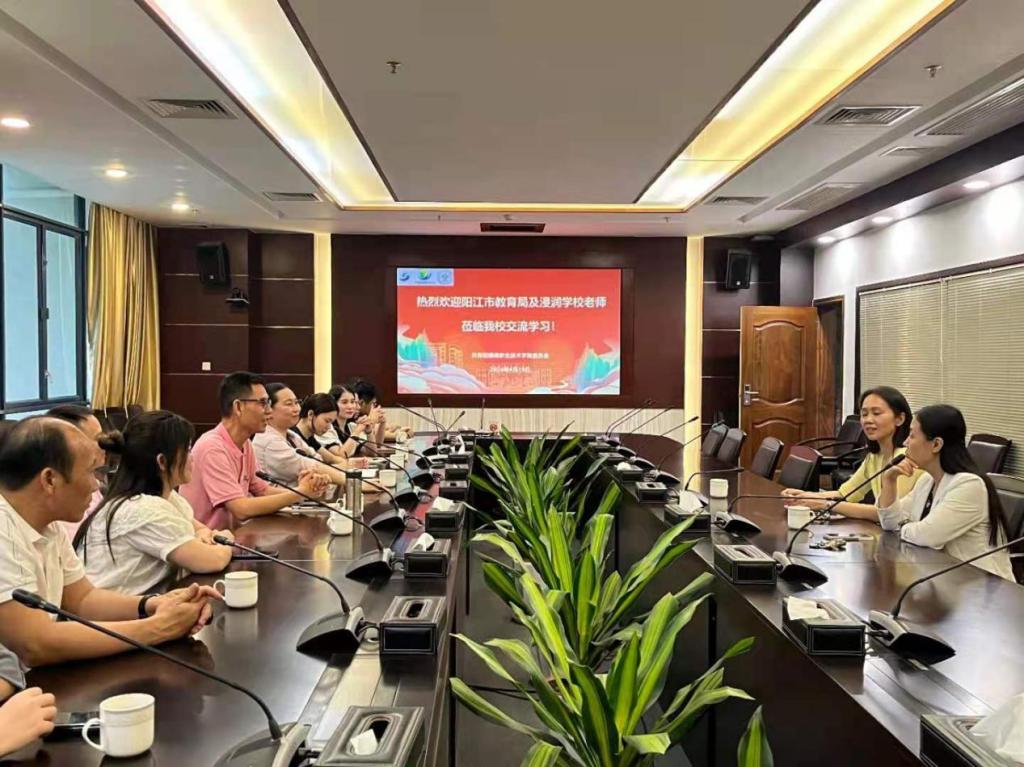 参观考察结束,一行人在taptap行政楼117会议室召开座谈会。taptap团委书记刘锦鑫对阳江市老师们的到来表示热烈欢迎,同时就本次培训考察的目的意义以及未来美育浸润工作方向和思路进行研讨。她表示,未来,在广东省教育厅的指导下,学校将继续寻求更多资源,通过多方联动,携手有关教育部门,创新思路如与地方中小学手拉手的形式,一起做好今年的美育浸润工作。