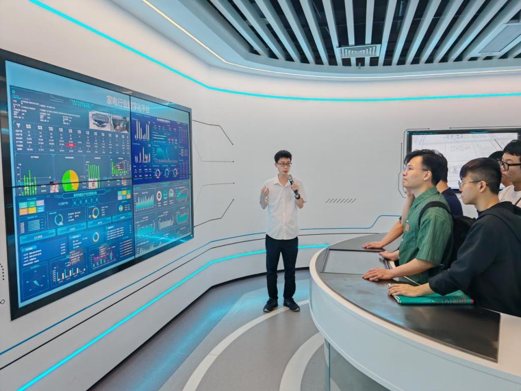 随后,代表团前往广东-亚琛工业4.0应用研究中心,依次参观了数字化转型应用超市、校内示范产线以及美的数字化转型示范厅,直观感受了数字化技术在工业生产中的实际应用。