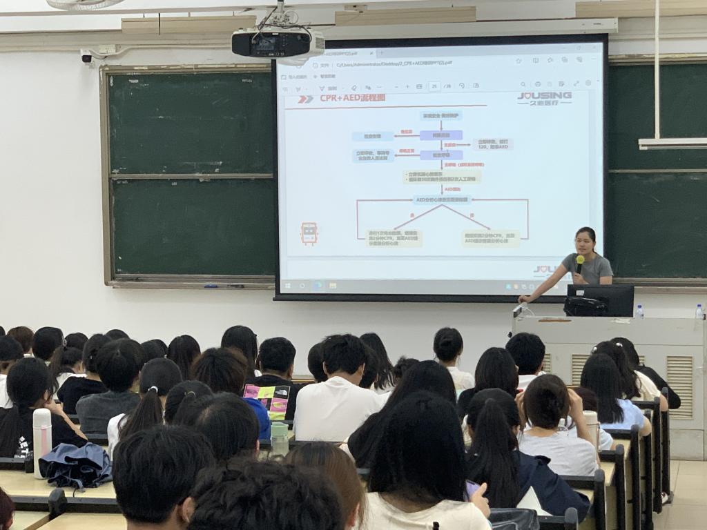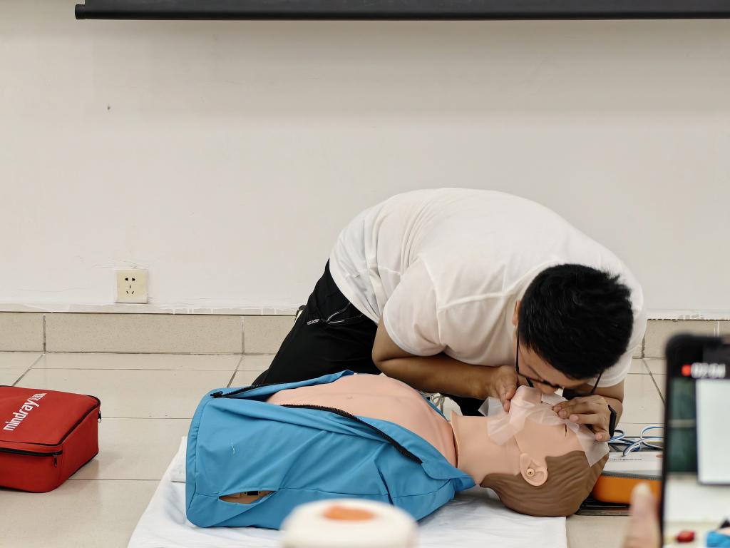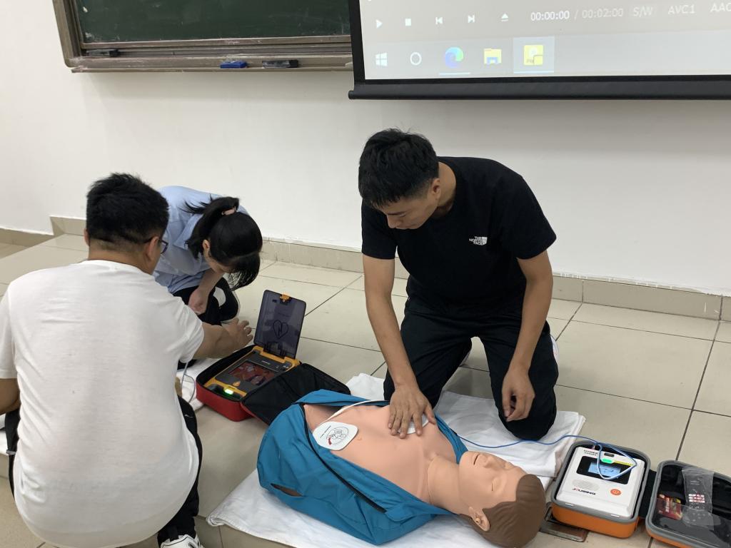 此次培训内容涵盖心肺复苏的重要性及基本原理、判断患者是否需要CPR 的步骤、正确执行 CPR 的操作方法(包括按压位置、频率、深度等)以及使用自动体外除颤器(AED)的注意事项等,内容丰富且实用。现场安排了师生心肺复苏按压实操和AED 使用环节。在专业讲师的指导下,他们准确地掌握了按压的力度、频率和位置,以及 AED 使用的正确步骤和方法,现场气氛热烈。