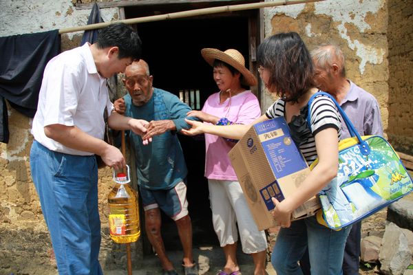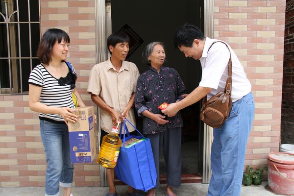 烈日炎炎,村路泥泞崎岖,在两个部门党支部书记的带领下,包括退休党员在内的15名党员志愿者,深入到英德市九龙镇石角村的塘埪、木洞等九个村小组看望“亲戚”们。他们共走访慰问了贫困户、五保户等对口帮扶对象十四户。党员们与帮扶对象进行了深入的交谈,并向他们送上慰问品、慰问金。每到一户人家,工会、财务处党支部书记和其他同志都亲切地握着帮扶对象的手,关切地询问帮扶对象的生活、生产情况。当他们了解到贫困户曾红全等家庭在taptap和乡村的帮助下,已经初步脱贫,今年在扩大生产、外出打工等方面会继续努力时,表示祝贺。他们热情鼓励其他“亲戚们”自立自强,通过勤劳致富,走出生活困境。曾红全对工会党支部书记专门托人带来胃药给他母亲治病感谢。