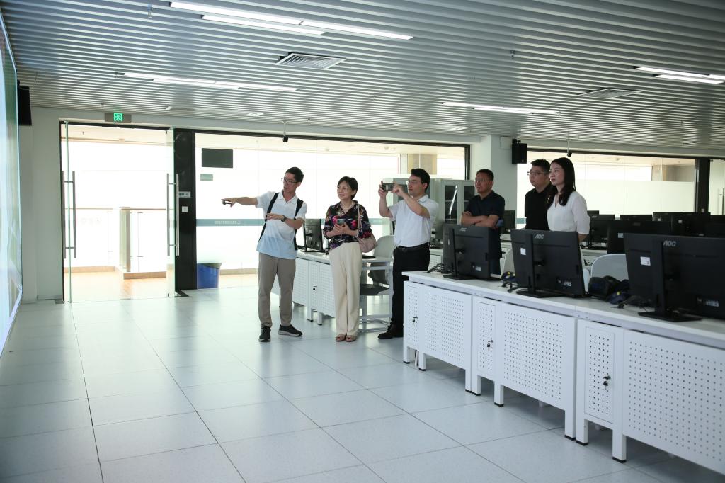 张萍一行参观考察了广东-亚琛工业4.0应用研究中心、智慧教室运营管理中心。对taptap信息化标杆校建设成果给予充分肯定,表示期待在智慧校园建设、大数据决策分析系统建设、虚拟仿真实训基地建设等方面与taptap开展深度合作。