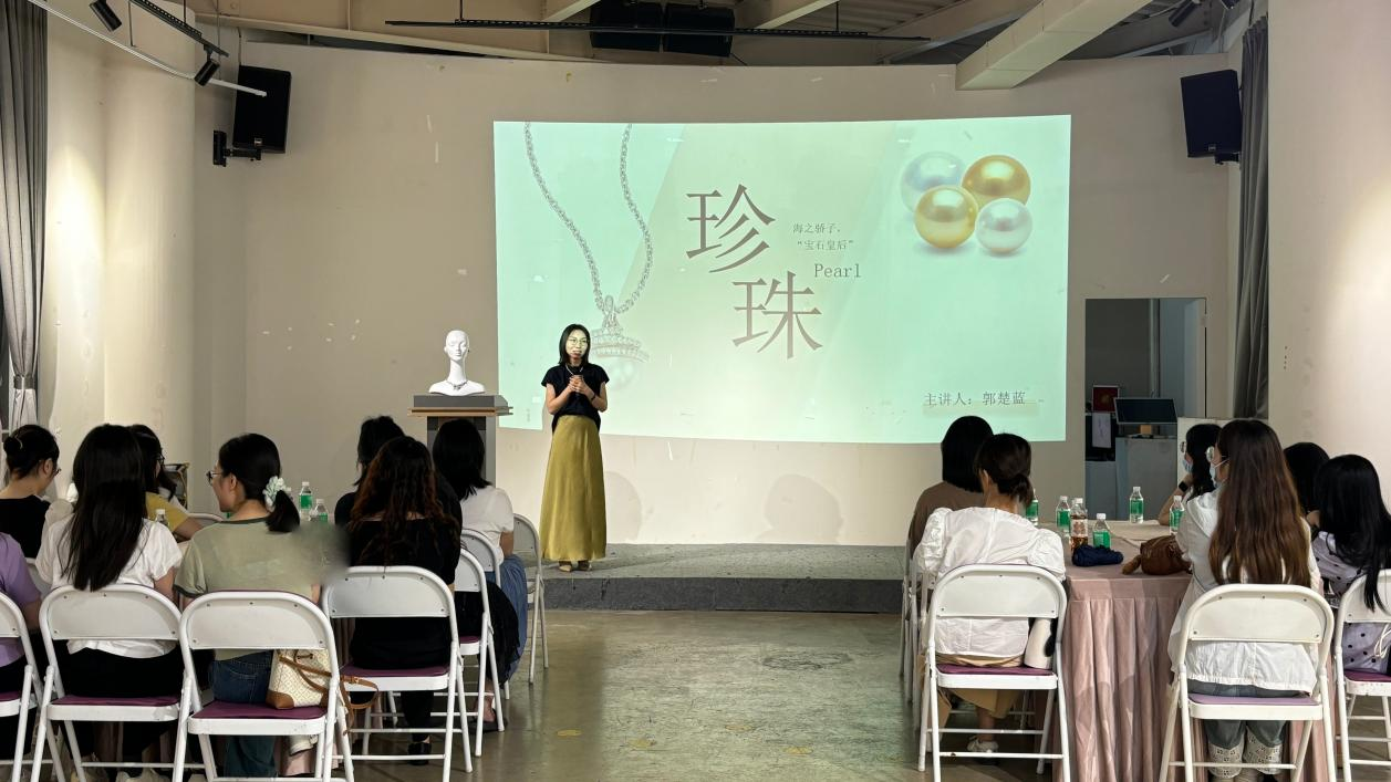 本次珍珠鉴赏课程由设计学院教师郭楚蓝主讲,吸引了荷城街道辖区内20余名青年积极参与。郭楚蓝以深入浅出的方式,结合热播剧人物配饰分析及实物珍珠鉴赏,阐述了珍珠的历史沿革、培育技术以及鉴别与选购技巧,激发了青年群体对珍珠首饰的关注与喜爱。