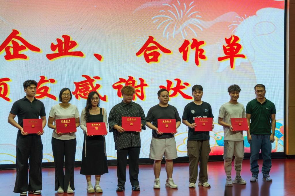 活动现场,綦恩周向大赛赞助企业顺德欢乐海岸PLUS、佛山市靖锐光影文化传媒有限公司、广东顺德美互动网络信息科技有限公司、佛山市麦微商务服务有限公司、佛山市千洲臻品文化艺术有限公司等颁发了“双百行动”感谢状。