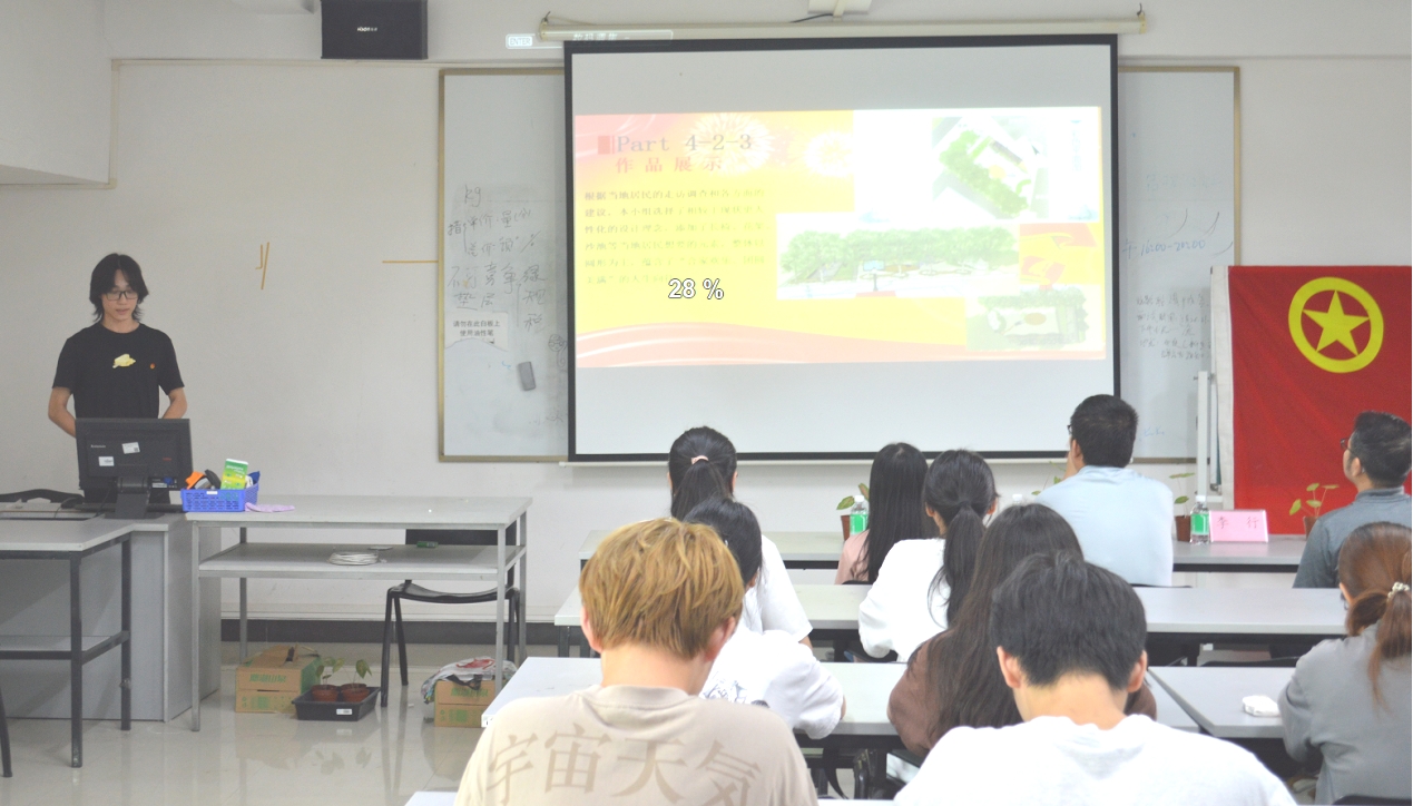 实践团成员介绍了为苏岗社区闲置地块设计的绿化方案。这些方案是同学们在专业教师的带领下,利用课余时间深入社区实地考察后,综合运用所学专业知识完成的,特别是大吉公园改造方案以“吉圆”为主题,寓意美好相遇,共赴新章,充分考虑了“以人为本”的设计理念,满足了苏岗社区不同年龄群体的休闲娱乐需求,反映了设计专业学生的创新思维和实践水平,也展示了设计学子助力“百千万工程”的决心和能力。