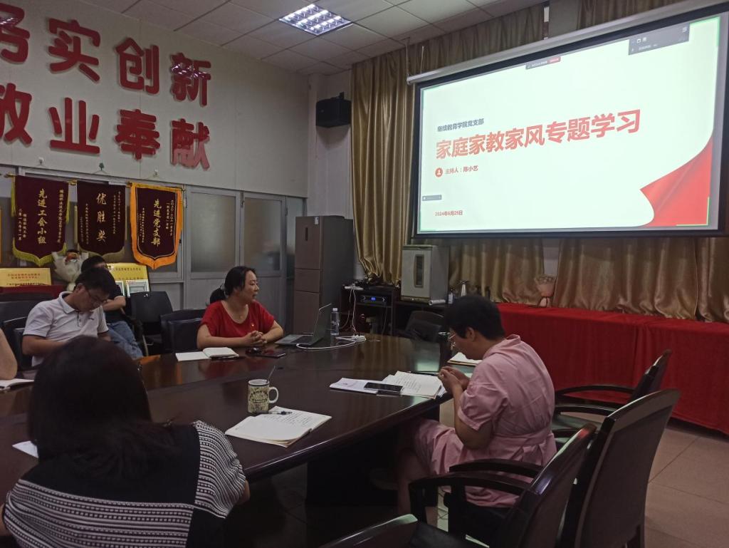 6月25日上午,继续教育学院党支部在105会议室举办系列党纪教育微党课学习活动。支部全体党员和入党积极分子参加会议。