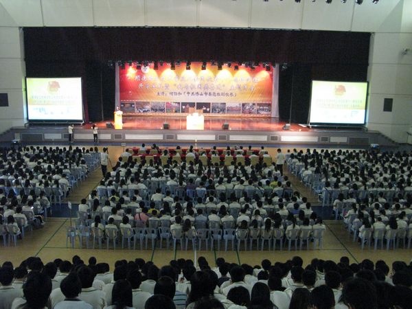 6月1日下午,taptap业余团校第十八期培训班开学典礼暨“我与祖国共奋进”主题讲座在梁銶琚堂隆重举行。学校纪委谭谦章书记、学生处、校团委相关负责人和老师、各院系分团委书记以及2000名学员参加了开学典礼。