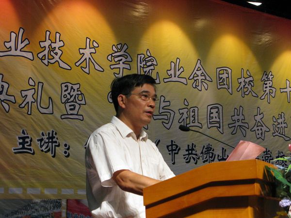 学校纪委谭谦章书记在开学典礼上致辞,他希望广大团员青年在团校培训班中做到三点:端正动机,认真对待;勤于学习,善于思考;加强沟通,密切配合。随后,学生处处长、校团委负责人宣读了《顺德职业技术学院业余团校管理办法》。