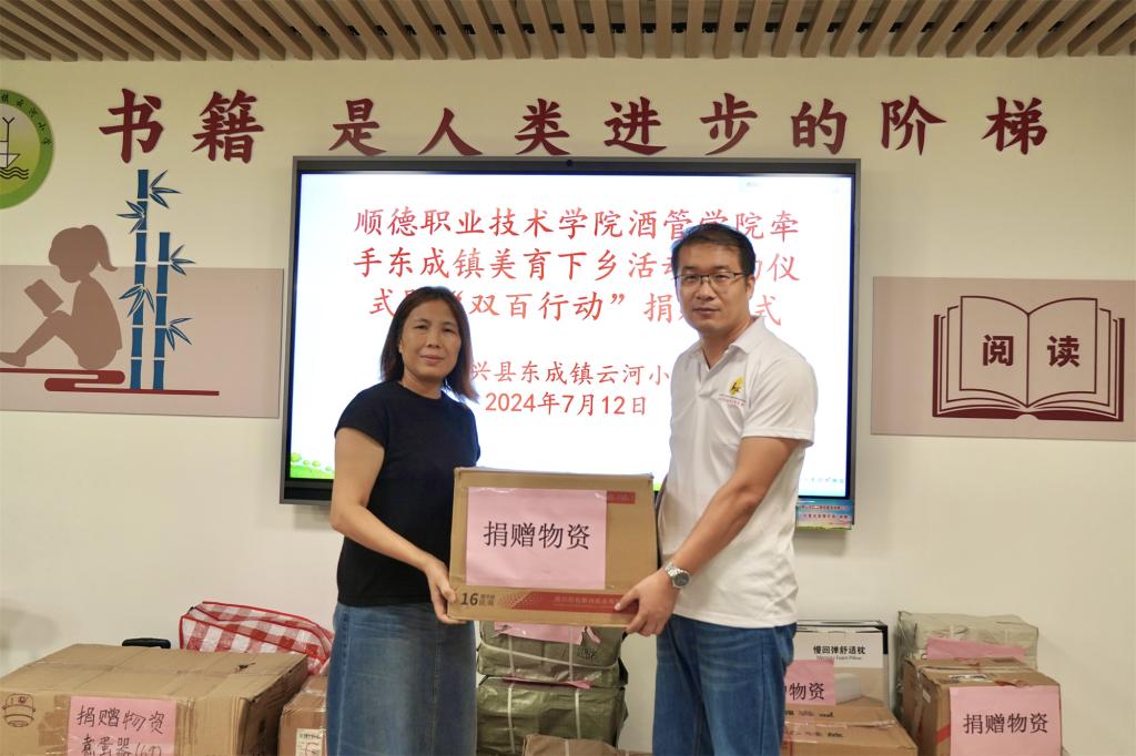 7月12日,酒店与旅游管理学院党总支书记綦恩周代表学院向新兴县东成镇云河小学捐赠2万元公益资金及书籍、体育用品、文具、生活用品等公益物资。这些资金和物资得到顺德慈善会、新华书店、小熊电气等单位支持,各方力量以实际行动助力乡村文化教育事业发展。