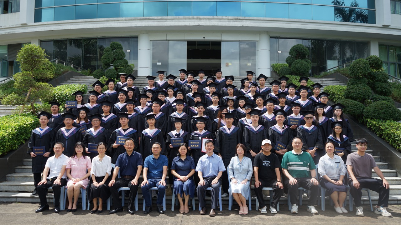 宋玉宏和刘刚桥为毕业生颁发毕业证书。侯文胜为新选出的2024届校友联络员颁发聘书。