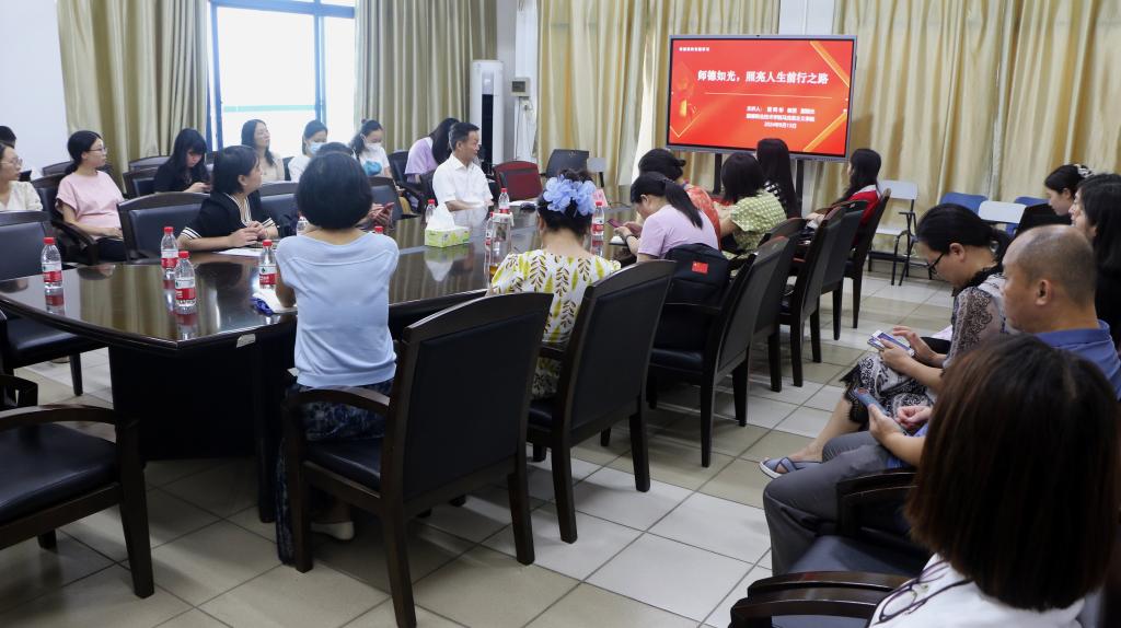 为大力弘扬教育家精神,加强教师队伍建设,按照学校2024年师德建设主题教育月活动部署,9月13日下午,外语外贸学院在3栋教学楼501会议室举行主题为“师德如光,照亮人生前行之路”的师德建设专题报告会,邀请马克思主义学院副院长董同彬教授作辅导报告。外语外贸学院院长魏藏锋、副院长王宾香、党总支副书记朱娉婷,以及学院教职工等近70人参加活动。