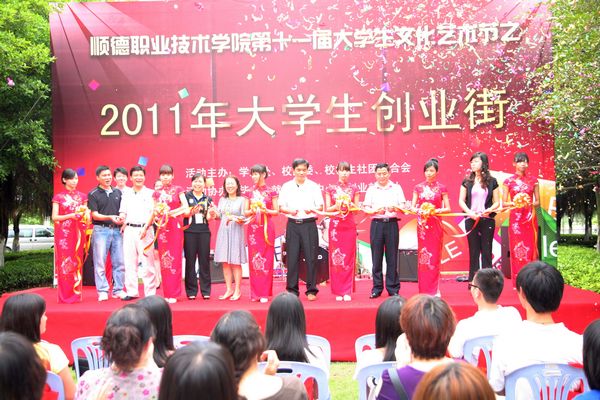 5月16日下午,学校第十一届大学生文化艺术节之“2011年大学生创业街”活动在学生生活区隆重开幕。学校纪委书记谭谦章,党委宣传部、学生处部门负责人以及中国移动通信集团顺德分公司、鼎瀛物业公司、南方医科大学、佛山科学技术学院等嘉宾出席了本次活动。