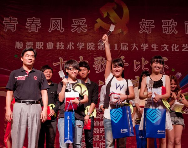 5月24日晚, 由学校学生处、团委主办,经济管理学院团委、学生会承办的顺德职业技术学院第十一届大学生文化艺术节之“展青春风采,好歌献给党”2011校园十大歌手总决赛在学校梁銶琚堂隆重拉开帷幕。学校纪委书记谭谦章,党委宣传部、学生处、工会、各院系相关负责人及师生代表2600人出席了本次活动。