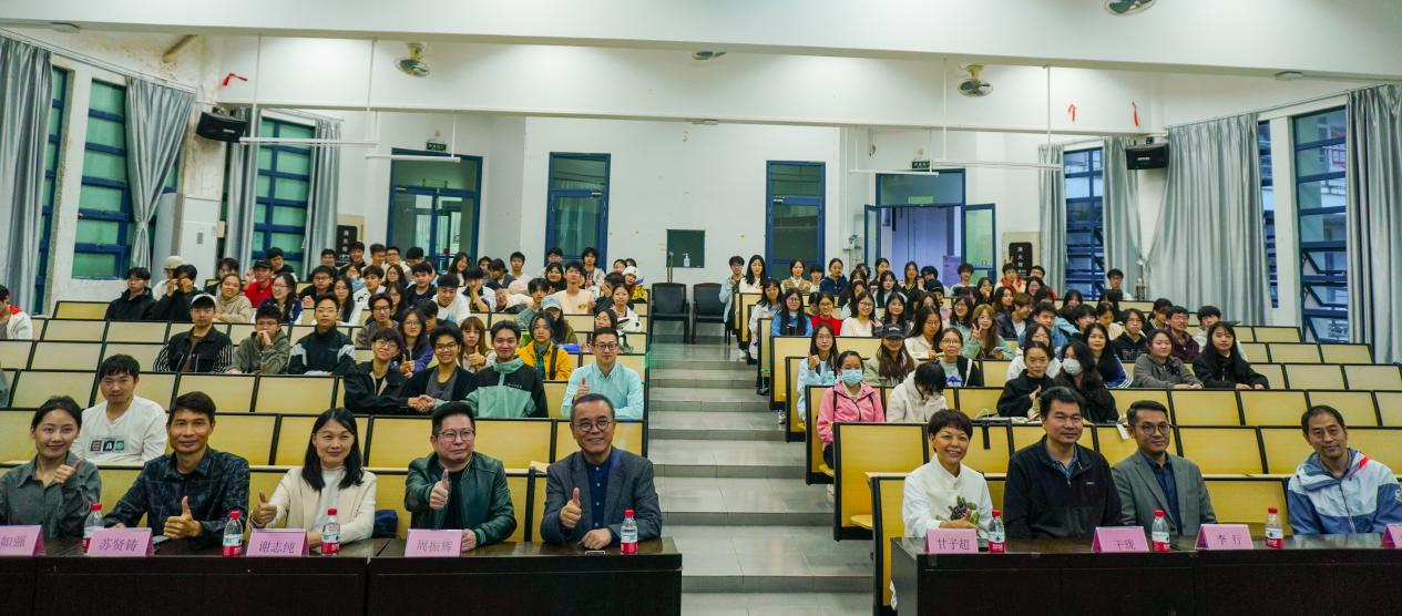 设计学院院长姚美康、党总支书记甘子超、副院长干珑、副书记李行、工业设计专业负责人顾宇清、全体辅导员和200名学生代表参加讲座。