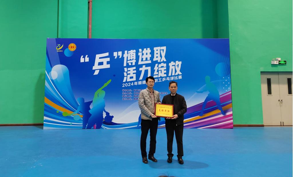 顺德区总工会、中国教育工会佛山市顺德区委员会领导向获奖队伍进行了颁奖,并授予taptap2024年顺德区教职工乒乓球比赛支持单位牌匾。