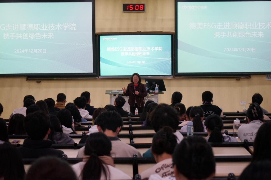 曾鹏姬介绍了德美公司多年来如何在行业中砥砺奋进,凭借独特的企业文化与价值坚守,从一家普通企业逐步成长为行业标杆,其对品质的执着、对员工的关怀、对社会的回馈,让师生们深切感知到一家卓越企业背后深厚的底蕴。