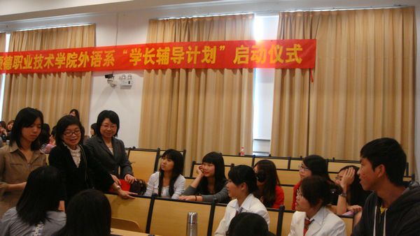 “学长辅导计划”是一项针对在校生开展的,旨在培养学生职业认同感,提高学生职业素质的“校友育人”计划。本次外语系共聘请了20位党员教师作为校内“职业导师”,聘请了22位校友为2010级学生的“职业导师”。
