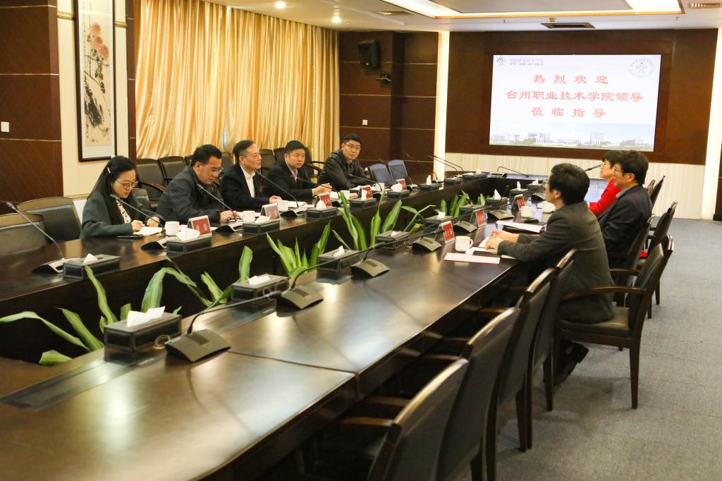 1月14日下午,台州职业技术学院调研组一行来到taptap,就落实立德树人、深化产教融合、服务区域发展、擦亮办学特色等进行调研。台州职业技术学院校长潘玉驹、副校长徐峰,教务处负责人等参加调研。学校党委书记李先祥,组织人事处、教务处负责人等陪同调研。