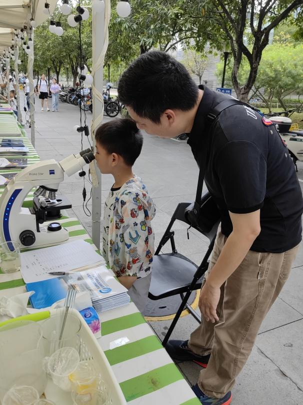 在显微镜体验区,孩子们通过镜头观察水样中的藻类、土壤里的微生物,不时发出阵阵惊叹。“原来一滴水里住着这么多小生物!”一位小学生兴奋地记录观察结果。不少家长表示,这种直观的科普方式让孩子对生态环境保护产生了浓厚兴趣。
