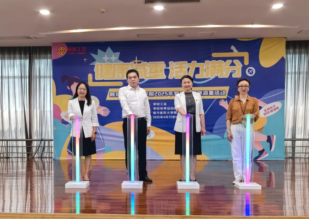 4月29日下午,学校工会联合学校体委、南方医科大学附属第八医院在学校教工活动中心举办“健康减重 活力满分”健康体重管理活动。学校党委委员、纪委书记黄伟坚,南方医科大学附属第八医院院长沈洁,校工会、校体委、各分工会代表、南方医科大学附属第八医院医护工作者200余人参加活动。