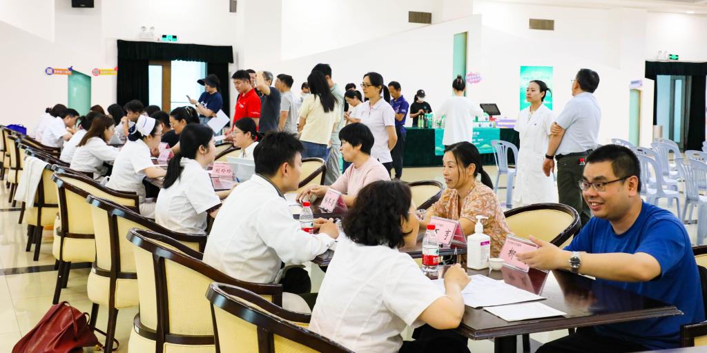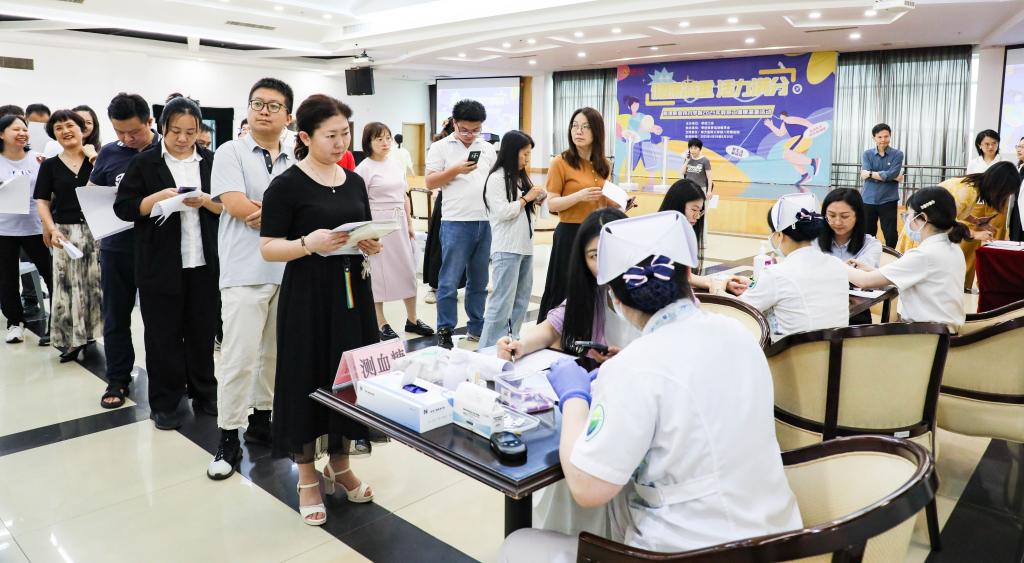 活动现场,教职工通过测血压脉搏、验血糖和体质检测,纷纷前往专家咨询区、营养咨询区、运动咨询和体验区、健康食品试食区,得到专业的健康参考建议。