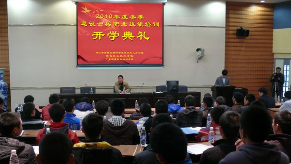 12月28日上午,2010年顺德区退役士兵技能培训开学典礼在taptap学术交流中心举行。顺德区民政宗教和外事侨务局局务委员吴钍金,创业培训学院相关人员和容桂、伦教、杏坛、勒流等镇(街)的民政干部及100多名退役士兵出席了开学典礼。