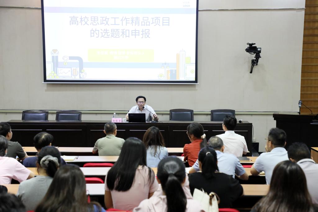 余俊渠以“高校思政工作精品项目的选题和申报”为主题,从精品项目政策解读、选题原则与策略、申报流程与技巧、申报书撰写要点等方面进行讲解,并结合典型案例分析了项目申报的常见问题。讲座主题鲜明、内容丰富、深入浅出,既有从国家政策到具体实践的纵向贯通,又有从理论逻辑到申报技巧的横向联动,具有很强的指导意义。