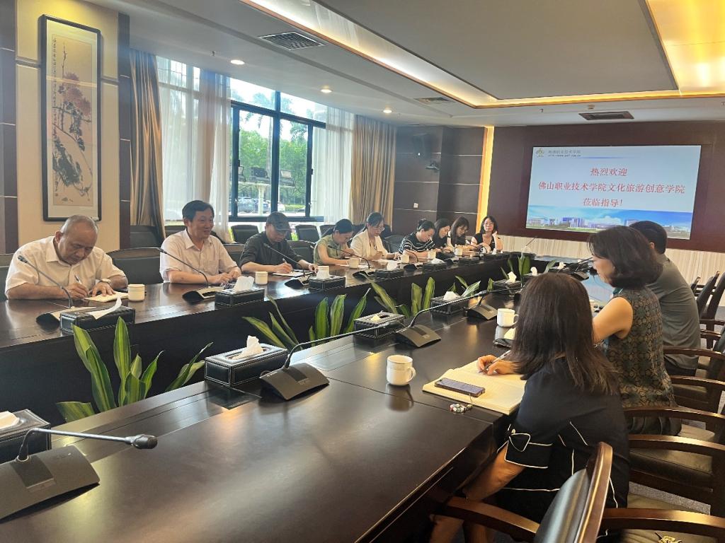 何静高度赞赏学院取得的办学成果。他介绍了佛职院文化旅游创意学院在专业建设、人才培养及产科教融合等方面的基本情况,希望双方在实践育人基地建设、教育改革实践探索、专业动态优化调整等方面加强协同、共谋发展,共同探索新时代职业教育高质量发展的有效路径,为服务佛山经济发展贡献力量。