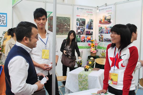 由08级学生自己设计的展位,展出了学生在校两年学习的成果,引来许多大型园林公司的青睐与驻足。现场的热闹景象还吸引了南方电视台智赢天下节目组记者的目光,他们专门对园林技术专业的参展目的及今后的办学设想进行了采访。华南植物园、珠海农科中心、汕头农科中心、海南博大兰花科技公司,花之星,广州百草园种业有限公司等三十多家知名园林单位与taptap园林技术专业(花卉方向)达成的就业意向岗位超过了2011年毕业生人数,岗位类型主要有植物配置、园林施工、生产管理、花卉营销。08级园林技术(花卉方向)共有学生41人,是该方向的首届毕业生,良好的就业开端是他们成功走向社会的关键一步!