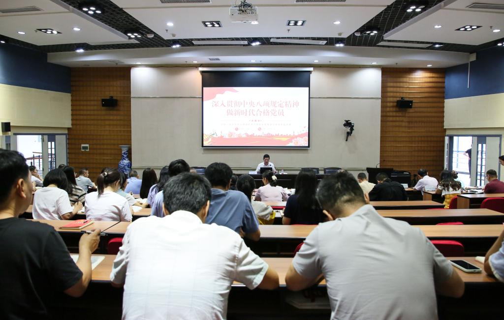 党员同志们分享了学习体会,一致表示,要以中央八项规定精神为行动指南,永葆清正廉洁的政治品格,锤炼扎实过硬的工作作风,切实提升工作质效,以实干担当为学校高质量发展贡献力量。