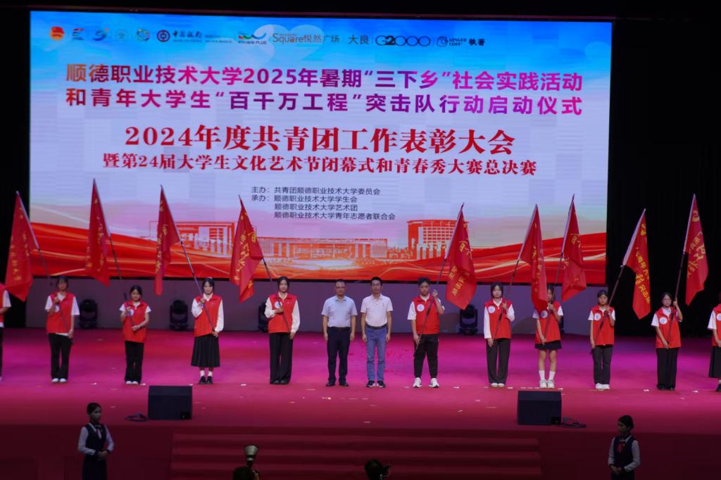 6月25日晚,taptap2025年暑期“三下乡”社会实践活动和青年大学生“百千万工程”突击队行动启动仪式、2024年度共青团工作表彰大会暨第24届大学生文化艺术节闭幕式、第十九届青春秀大赛总决赛在梁銶琚堂举行。共青团佛山市委员会副书记邹兵兵,共青团顺德区委员会书记欧阳嘉声,学校党委委员、副校长李天赠,学校党委委员、组织人事处处长陈文海,以及党委宣传部、校团委、学校工会等部门负责人,各学院党总支副书记、团学老师,企业家代表,校友和2500余名师生参加活动。