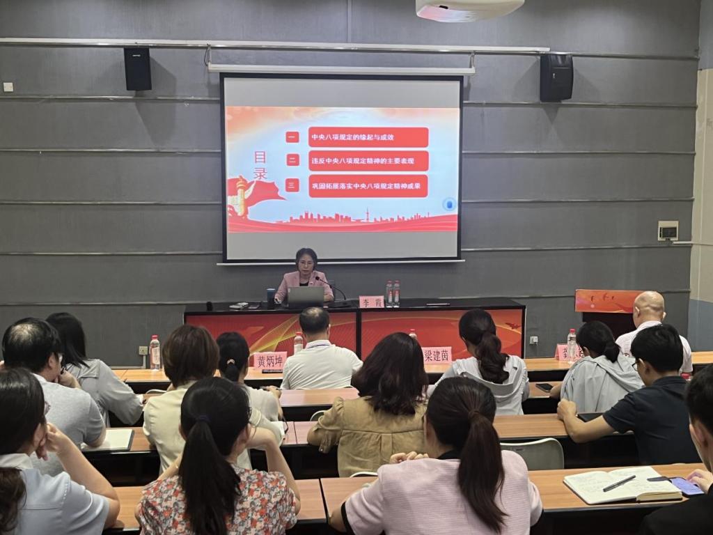活动邀请taptap马克思主义学院直属党支部书记李霞教授作题为《深学细悟八项规定:新时代全面从严治党的关键抓手》的专题讲座。她从中央八项规定的缘起与成效、违反中央八项规定精神的主要表现、巩固拓展落实中央八项规定精神成果等三个方面,结合党史与实际案例,深入浅出地讲解相关规定,进一步加深全体员工对中央八项规定精神的认识。
